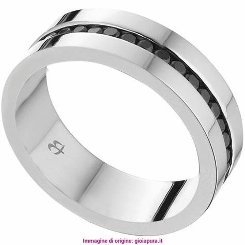 anello uomo acciaio e cristalli neri